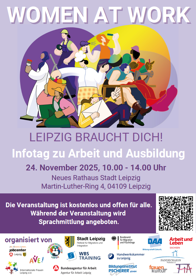 Weitere Informationen finden Sie unter: Homepage der Stadt Leipzig, sowie auf unseren Instagram- und Facebook-Kanälen unter women_at_work_leipzig.